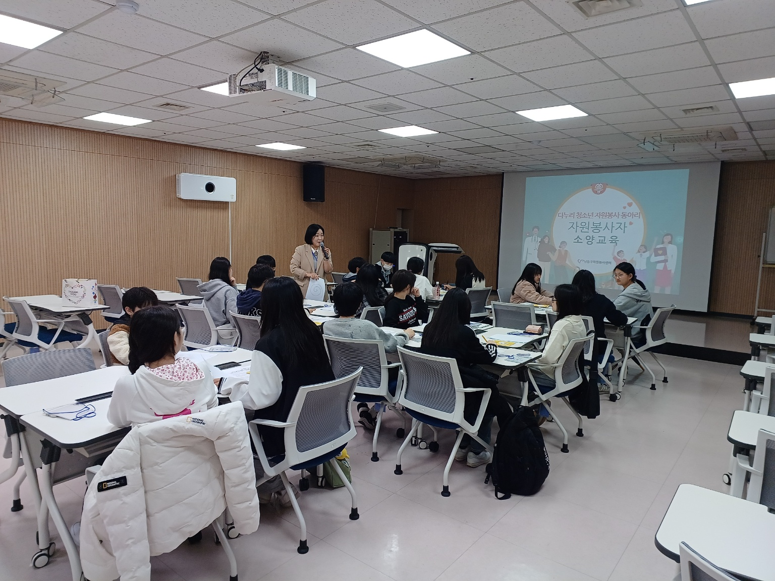 밝고 적극적인 자세로 교육에 참여하는 청소년의 모습에서 따듯한 온기를 느낄 수 있는 시간이었습니다. 자원봉사 활동 시 유의사항, 자원봉사의 가치와 의미 등으로 교육이 진행됐는데요. 이번 교육을 통해 봉사동아리 청소년 자원봉사자로서 나눔과 배려의 마음을 키워 지역 사회에 선한 영향력을 행사하는 주체가 될 것으로 기대됩니다.