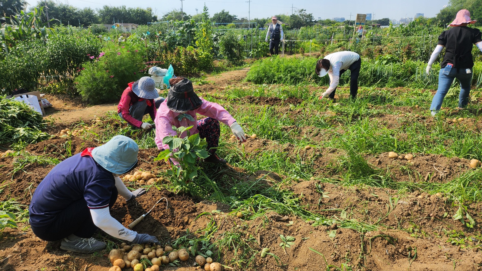 인천 남동구자원봉사센터는 최근 남동구 주말농장 나눔 텃밭에서 환경모니터링봉사단, 콜퀵봉사단 등 자원봉사단체들과 어려운 이웃에게 전달할 감자를 수확했다.